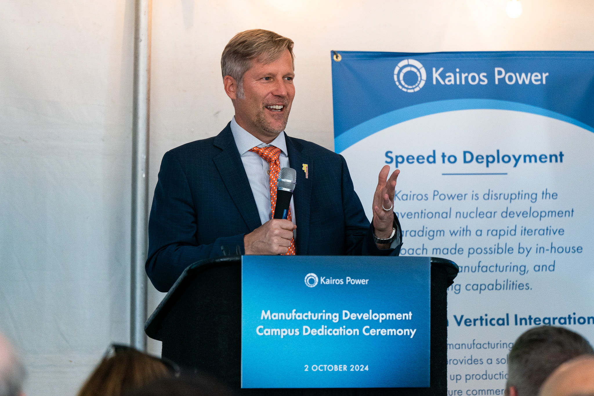On the same day Kairos Power broke ground on the Salt Production Facility, the company held a dedication ceremony for its Manufacturing Development Campus. Guests toured the company’s facilities and heard remarks from local, state, and federal leaders celebrating the transformational site where Kairos Power is piloting key manufacturing capabilities to enable the clean energy transition.