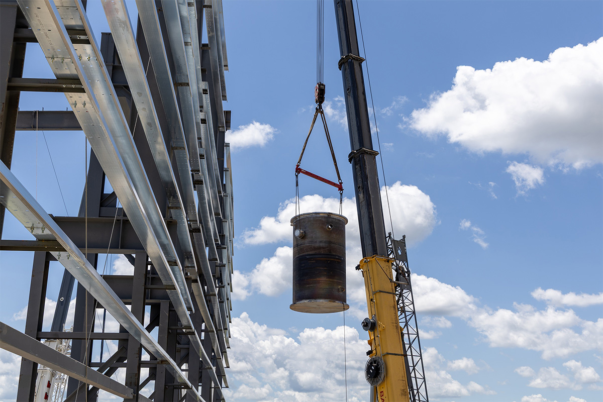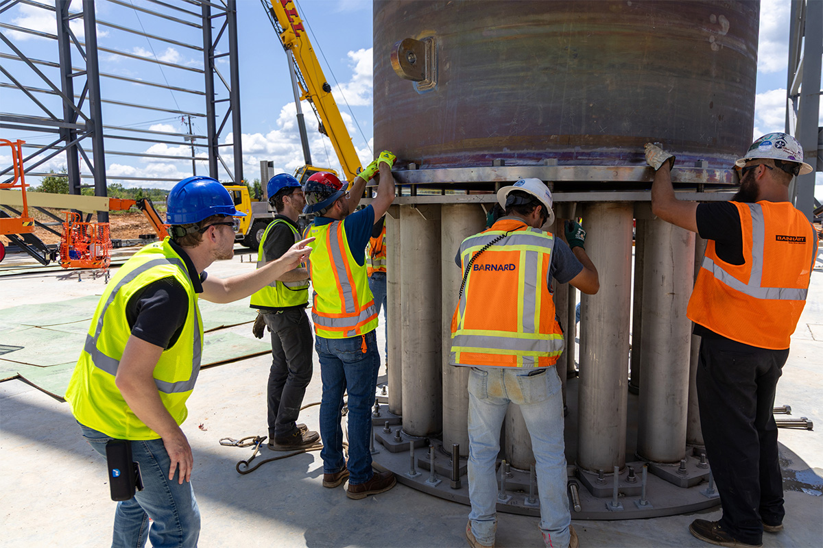 The installation of the 14-foot-tall ETU 3.0 vessel marks a significant construction milestone for the non-nuclear reactor mockup. The ETU 3.0 building is being constructed around the reactor vessel in a streamlined sequence, which allowed the oversized component to be moved into position before the roof and other elements are in place. Kairos Power is collaborating with Barnard Construction to build the facility, using it as a proving ground to refine civil construction methods and quality assurance procedures for the Hermes Low-Power Demonstration Reactor, currently under construction at the same site.