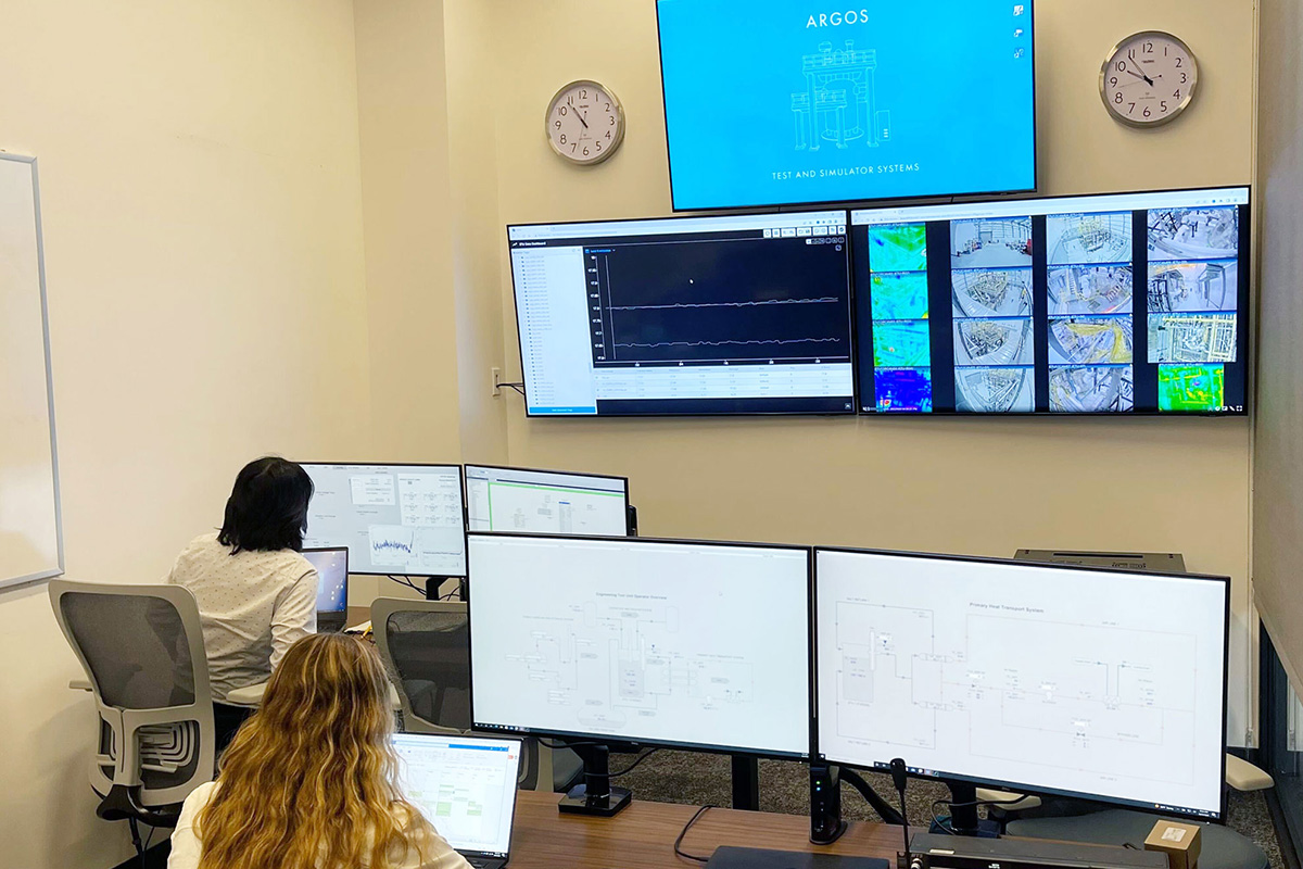 There are always eyes on ETU as operators monitor the system from two control rooms – one co-located with ETU at KP Southwest and one at Kairos Power headquarters in Alameda, Calif. From these vantage points, operators can observe real-time data from thousands of sensors on human-machine interfaces that display temperatures, pressures, oxygen levels, moisture readings, and the decreasing weights of the Flibe canisters as their contents flow into the system.
